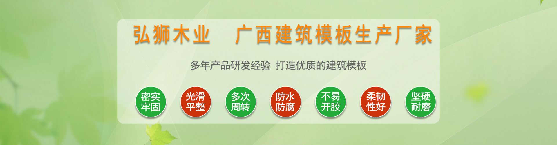 廣西弘獅木業(yè)有限公司是一家專業(yè)從事建筑模板研發(fā)、制造的綜合性高新技術(shù)企業(yè),自成立以來(lái)一直致力于建筑模板的研發(fā)、生產(chǎn)、銷售,公司擁有200畝的刨板、曬板基地和100畝的模板生產(chǎn)車間,目前擁有50條專業(yè)生產(chǎn)線,日產(chǎn)量達(dá)到4萬(wàn)張/日。公司從采購(gòu)木材到生產(chǎn)模板都嚴(yán)格執(zhí)行,所有成品都要經(jīng)過(guò)嚴(yán)格檢測(cè)才安排給客戶發(fā)貨。
